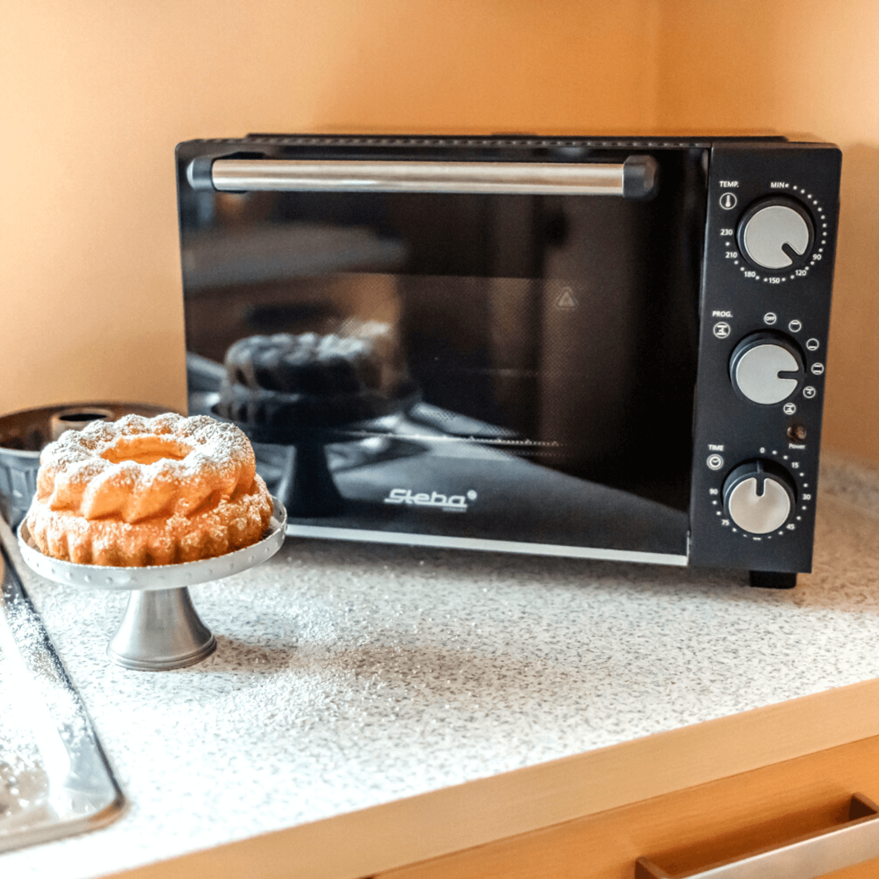 Der Steba Backofen KB M19 eignet sich hervorragend für die schnelle Zubereitung kleinerer Gerichte. Im Vergleich zu einem Einbaubackofen verbraucht er deutlich weniger Energie, da er kaum vorheizen muss. Durch eine wirksame Gehäuseisolation und eine doppelverglaste Tür erreicht der KB M19 eine Höchsttemperatur von 230 ºC – und kann damit locker mit einem herkömmlichen Ofen mithalten.