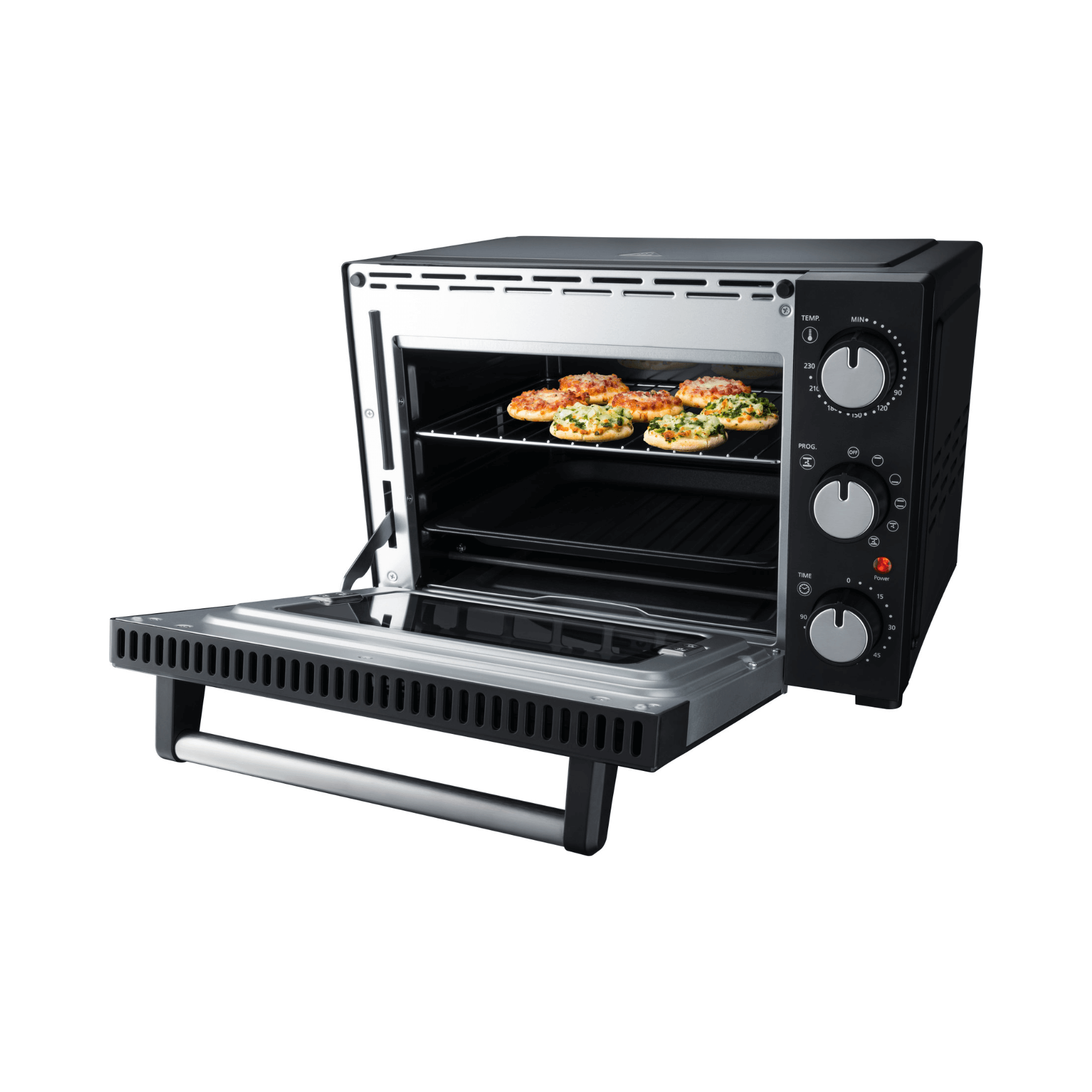 Mit seinem 19 Liter Innenraum bei einer Grundfläche von 37 x 45 cm eignet sich der kleine Powerofen ideal für einen Single-Haushalt, eine kleine Küche oder den Einsatz im Camping-Urlaub.