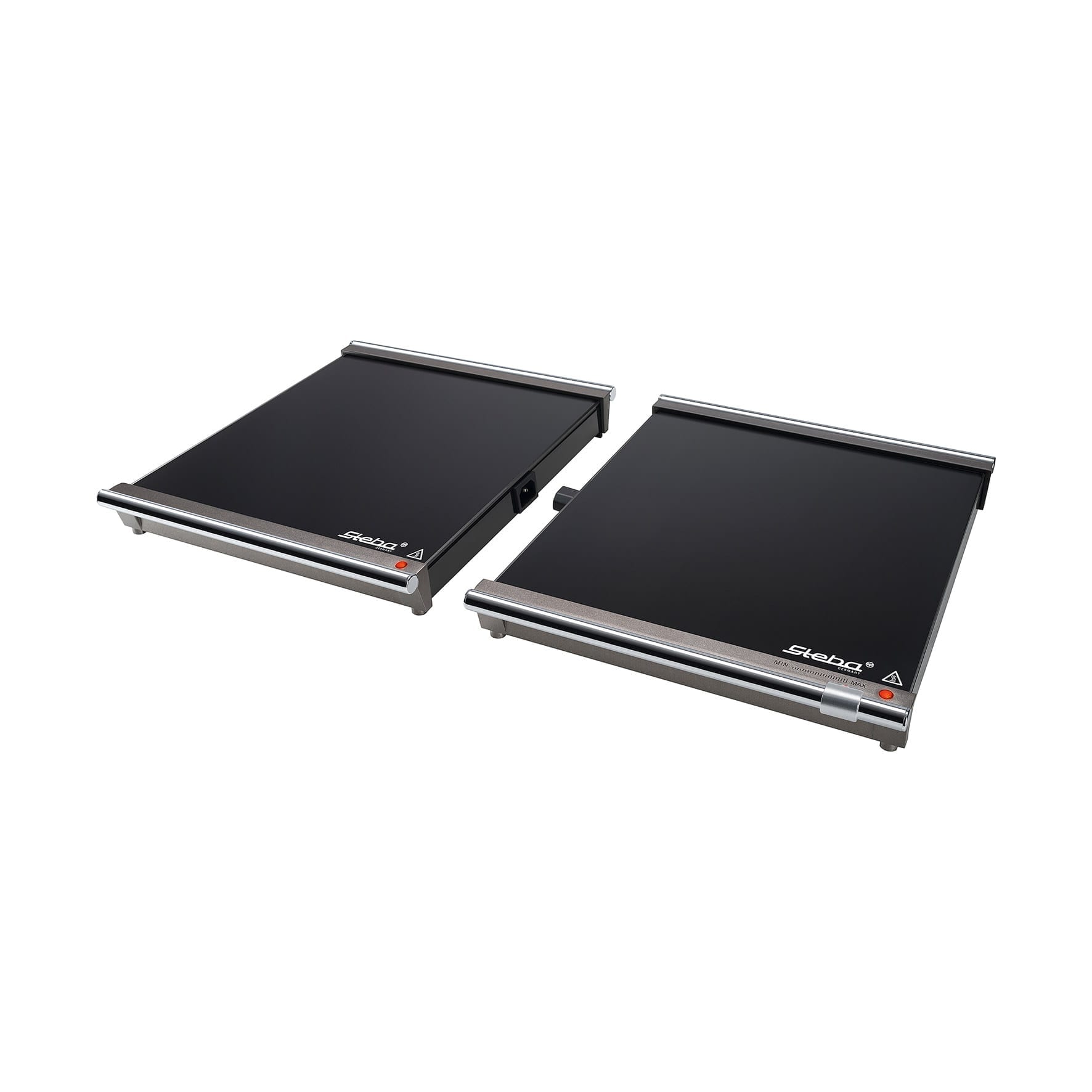 Die Warmhalteplatte WP 1 von Steba ist der ideale Begleiter für eine festliche Tafel oder ein feierliches Buffet. Die Temperatur der Platte lässt sich zweistufig zwischen 75 und 120°C einstellen und passt sich somit gut an die warmzuhaltenden Speisen an. Mit seiner stabilen Glasoberfläche und der Griffleiste in Chromoptik ist die Warmhalteplatte auch ein optisches Highlight. Das Grundgerät besteht aus einem Anfangs- und einem Endstück. Die Besonderheit: es können bis zu drei weitere Module dazwischen gesetzt werden! Somit können auf einer langen Tafel insgesamt bis zu 5 Module gleichzeitig betrieben werden! Durch die superflache Bauweise ist auch die Aufbewahrung ein Leichtes.