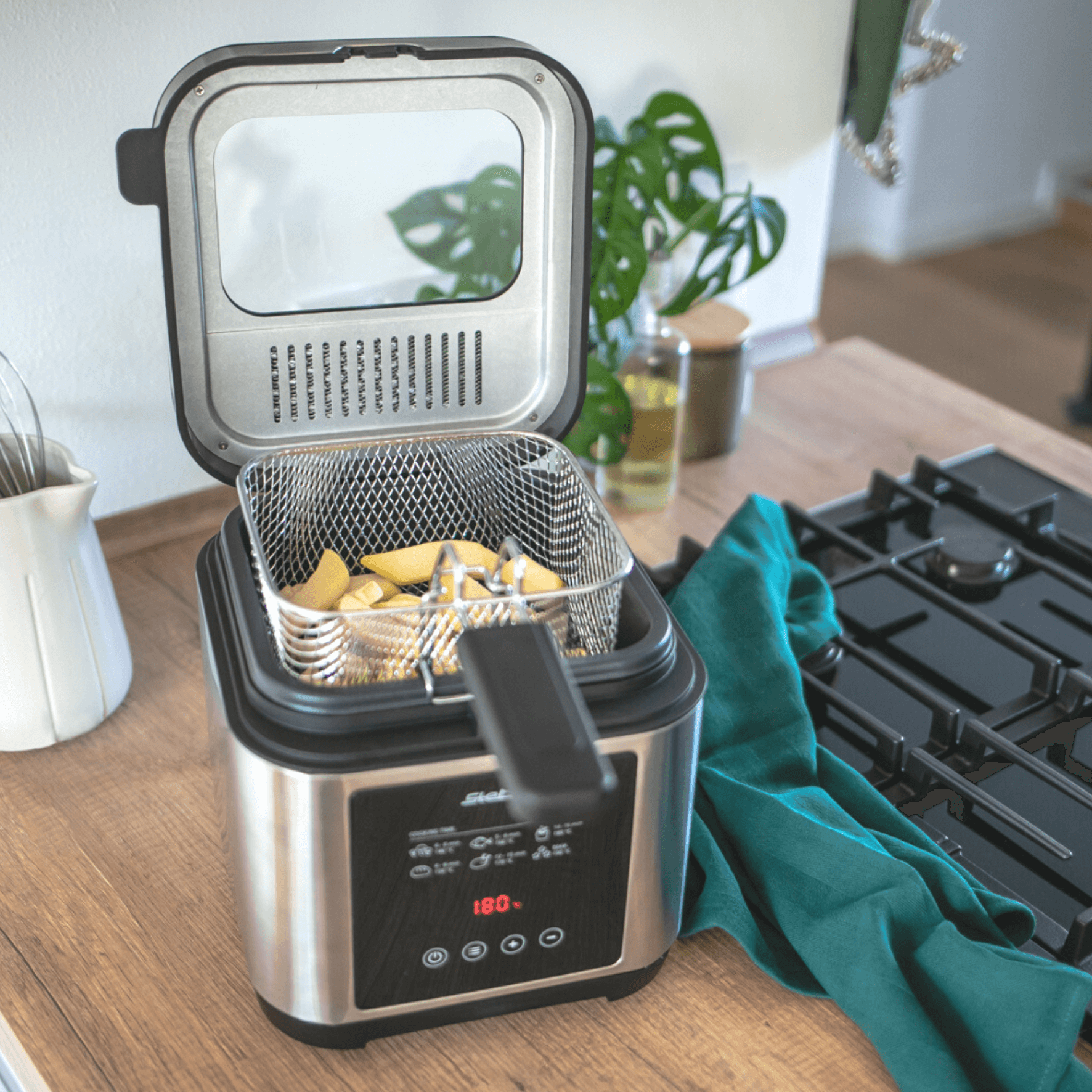 - Für bis zu 800g Frittiergut (optimal: 500g)