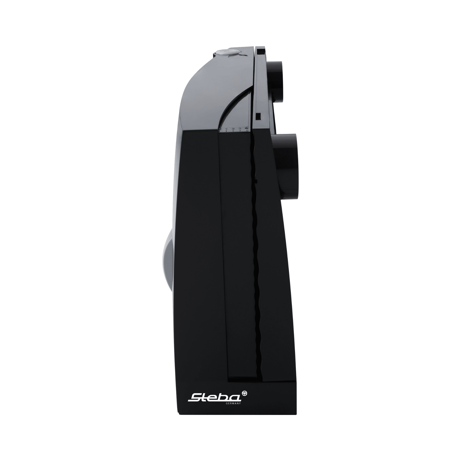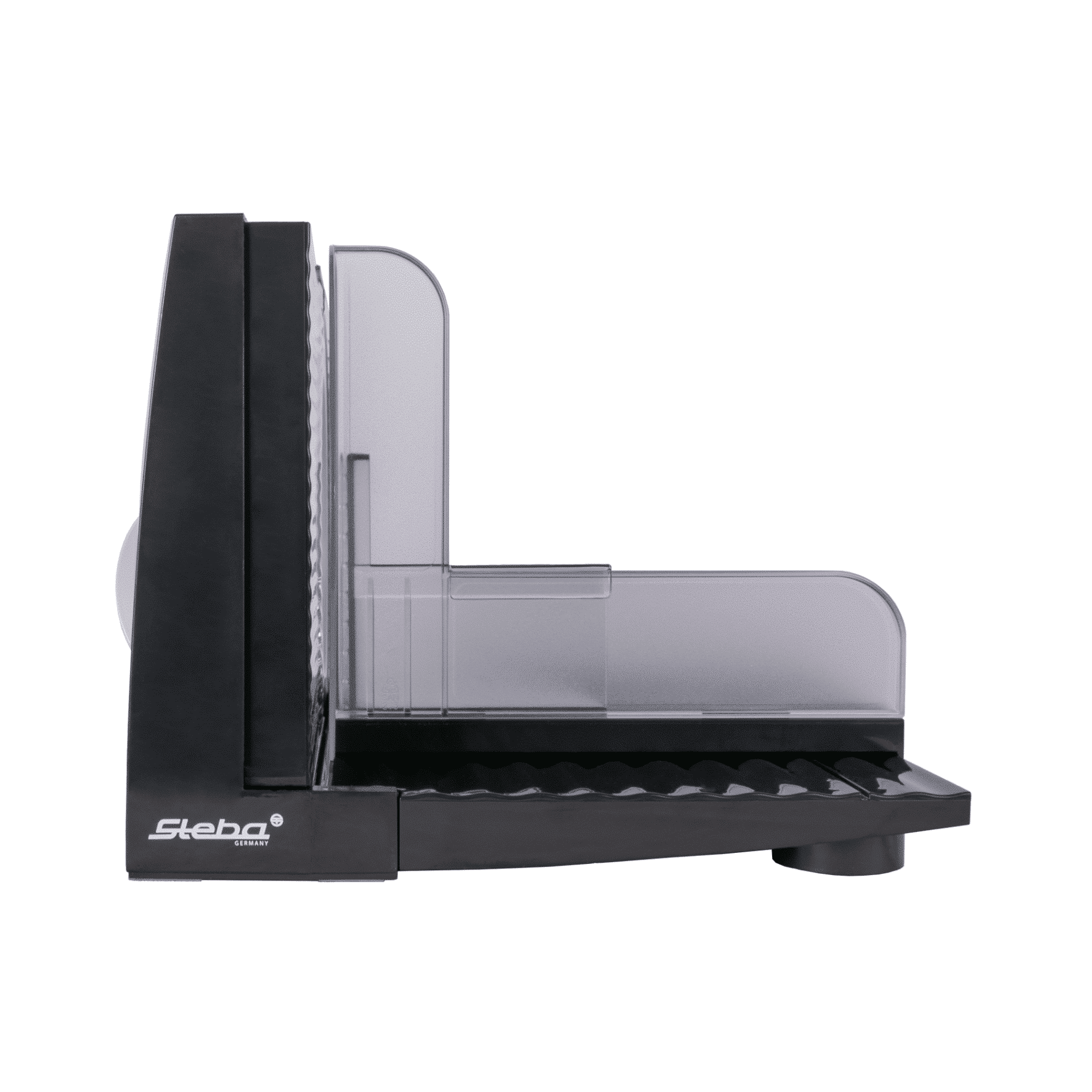 Der Steba Allesschneider AS 100 kann eingeklappt (20 x 9,5 x 33 cm) werden und passt problemlos in jeden Küchenschrank. Auf diese Weise eignet er sich für den Gebrauch in kleinsten Küchen und belegt nicht dauerhaft wertvollen Arbeitsplatz.