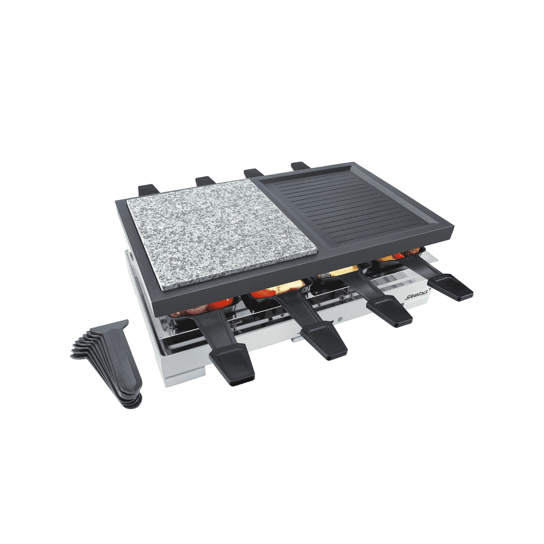 Das Premium Multi-Raclette RC 88 mit seinem stufenlos regulierbaren Heizsystem erreicht nach kürzester Zeit hohe Grilltemperaturen. Auf einer Grillfläche von 40 x 23,5 cm haben Sie genügend Platz um mit 6-8 Personen gleichzeigt zu grillen. Die 8 antihaftbeschichteten Pfännchen lassen sich problemlos reinigen. Die rechteckige Form ist optimal für eine Tafel geeignet.